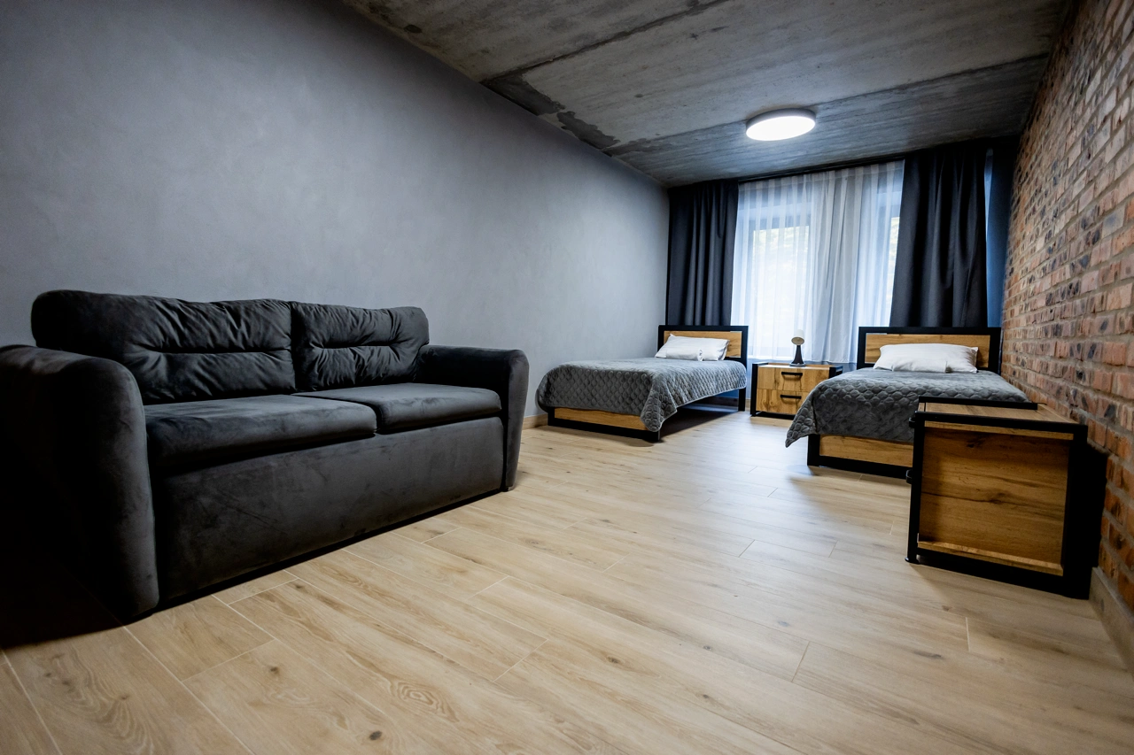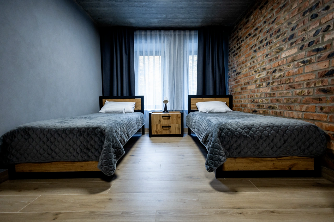 Наші номери — світлі й доглянуті. У кожному номері — чиста постіль, зручні ліжка, базові меблі для зберігання речей. Все організовано так, щоб кожен гість міг почуватись комфортно. Простір не перевантажений, усе максимально функціонально. Простір охайний і легкий у догляді — мешканці самі підтримують порядок під час перебування.