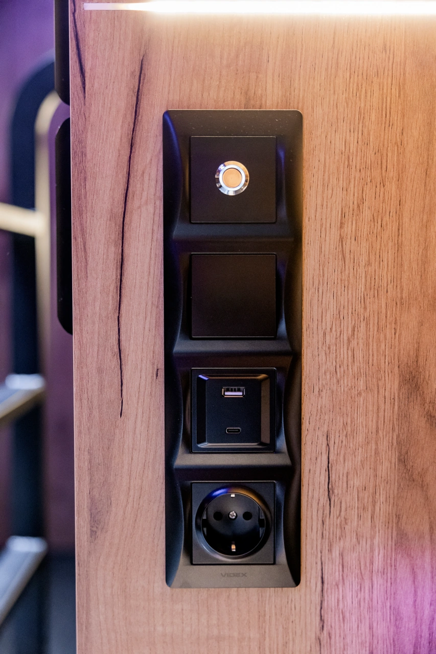 1 розетка на кожну капсулу + type-c розʼєм та адаптивне освітлення